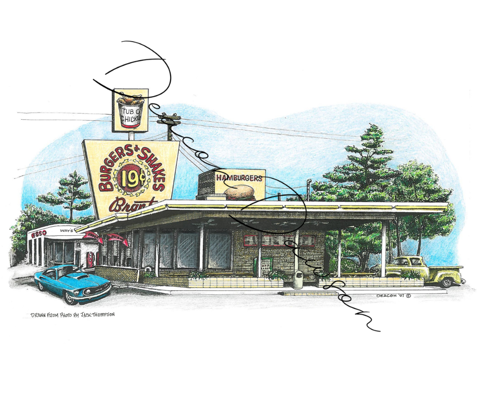 Corner of 3rd Avenue South and Kings Hwy. 17 from the 60's to the mid 90's, John Branton and family welcomed locals, and tourist alike to Brant's for their popular 19 cent Burgers and Shakes. Serving up deliciously different burgers, hot dogs, fried chicken, and ice cream, Brant's became a Grand Strand "meet and eat" tradition. Whether you Takeout or Eat in, you couldn't beat the price! After Mr. Branton sold Brant's the building was moved across 3rd Ave South (facing the famous Swamp Fox Roller Coaster at Family Kingdom). The original location is now occupied by Wings Beachwear.